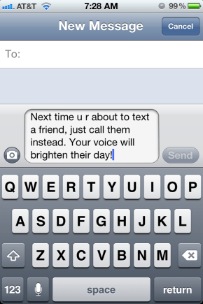 Don’t get me wrong I do enjoy texting! The problem begins when we believe that a text message is actually the “best” way to communicate. For thousands of years the human spirit has… Continue reading